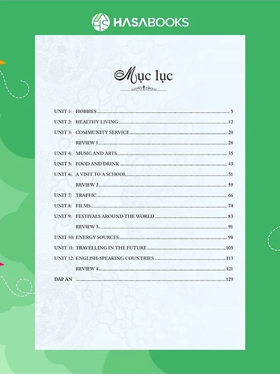 - Phần F – Writing: các bài tập sắp xếp câu, viết lại câu giúp luyện tập kỹ năng viết.