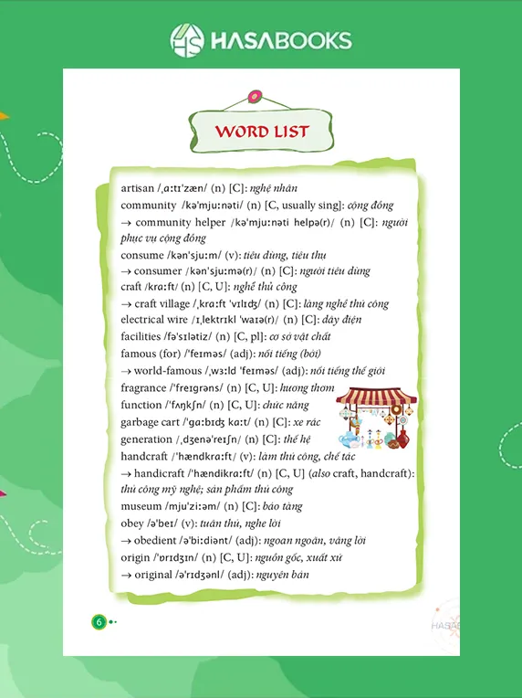 ★ Word list: Cung cấp các từ vựng trọng tâm trong bài kèm phiên âm quốc tế. Các từ vựng được giải thích nghĩa sát với ngữ cảnh trong bài học, giúp học sinh dễ hiểu và áp dụng từ.